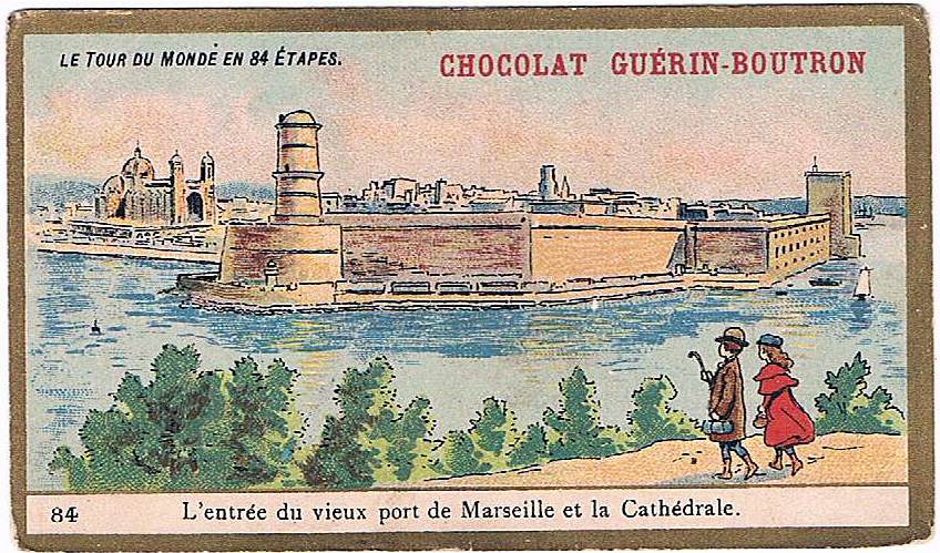 Chromo du chocolat Guérin-Boutron L’entrée du vieux port de Marseille et la cathédrale