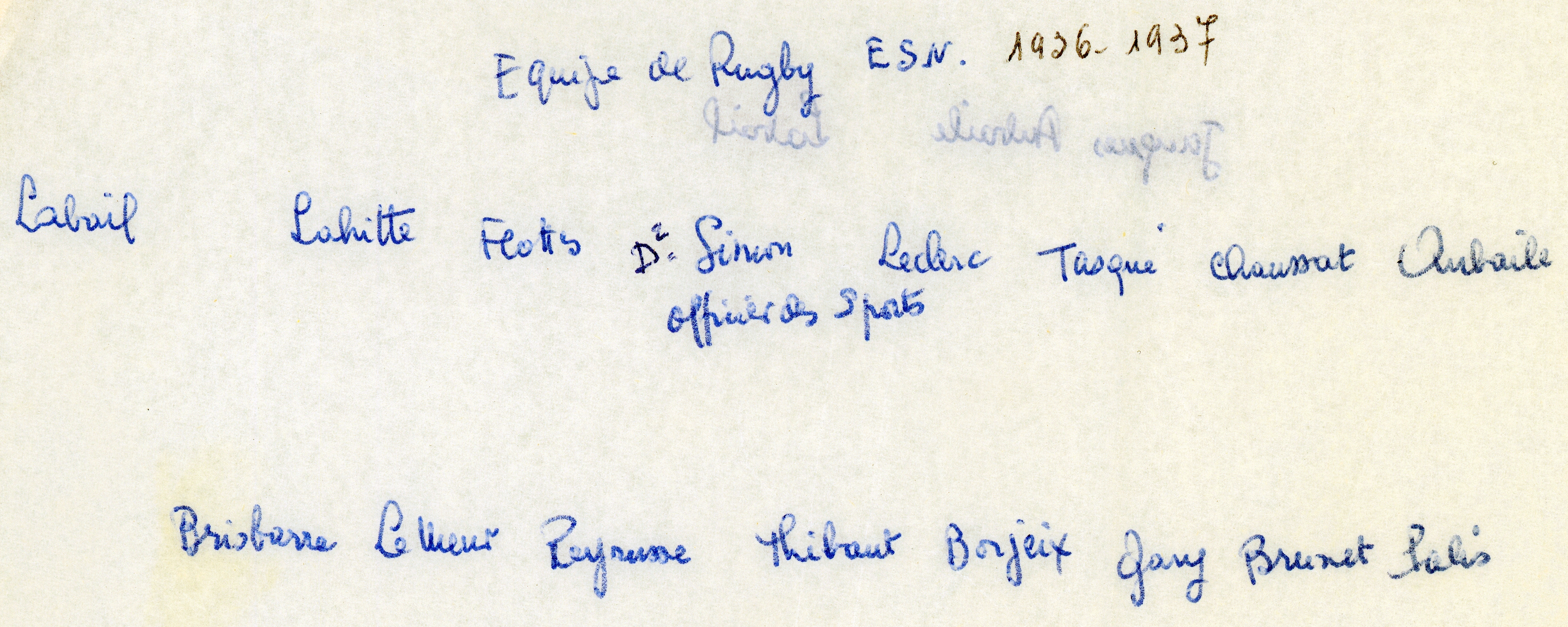 | Équipe de rugby ESN 1936-1937 La légende de la photo est ci-dessous |