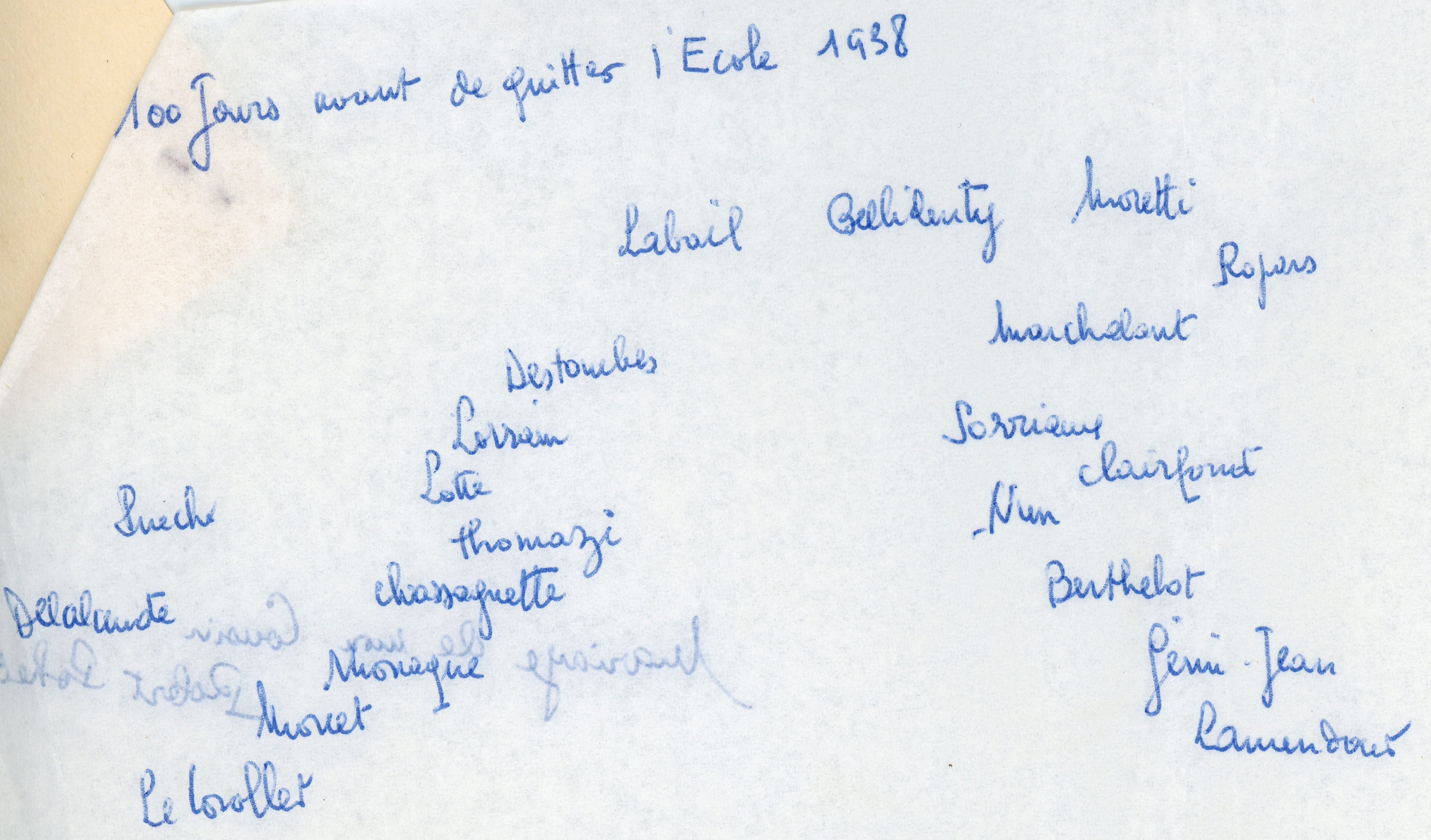 | Cent jours avant de quitter l'École 1938 Ci-dessous la légende |