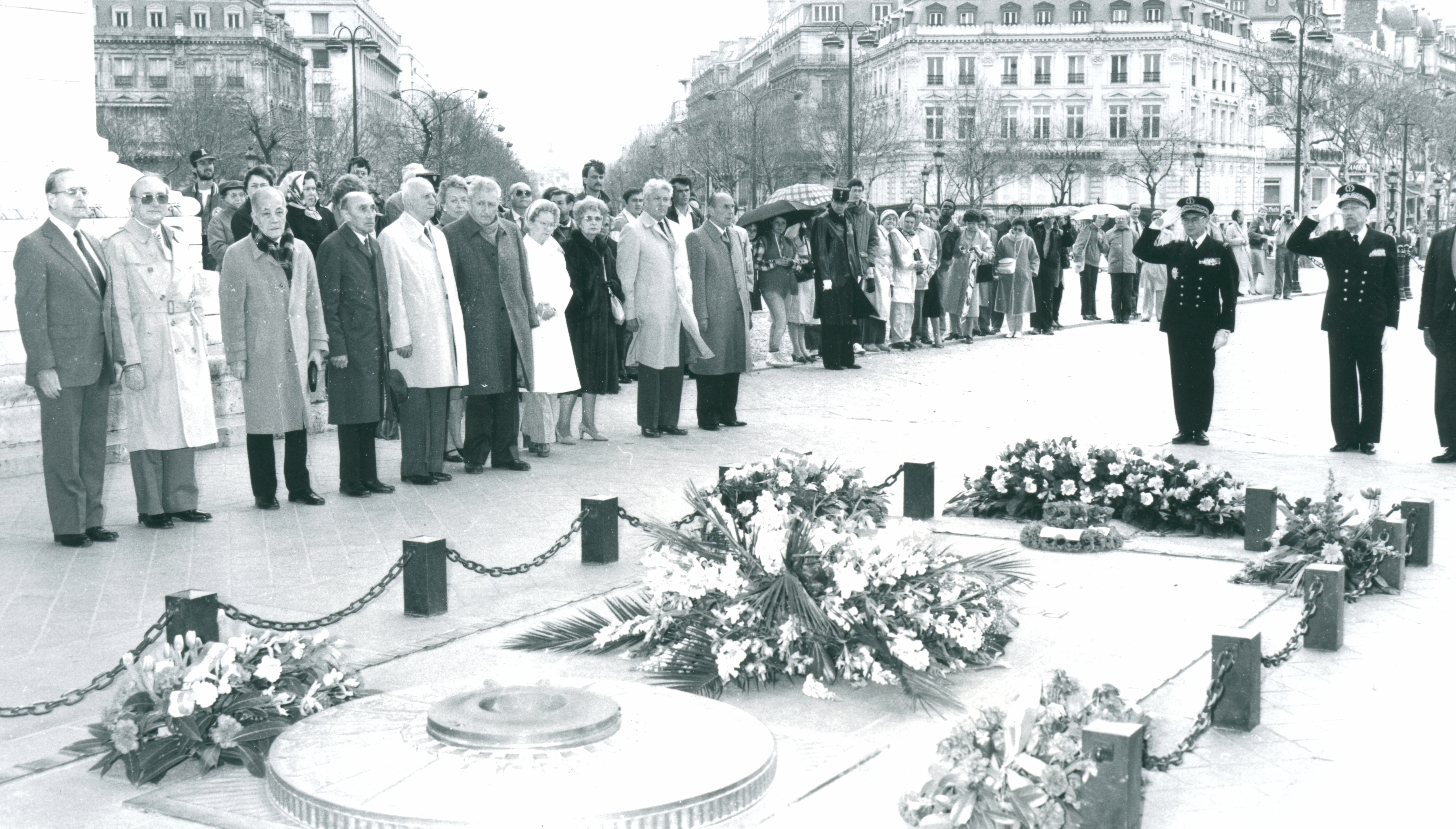 | A l'Arc de triomphe 1985 Dépôt d'une gerbe par l'ASNOM Photo prise par les "Actualités photographiques parisiennes", droits réservés. |