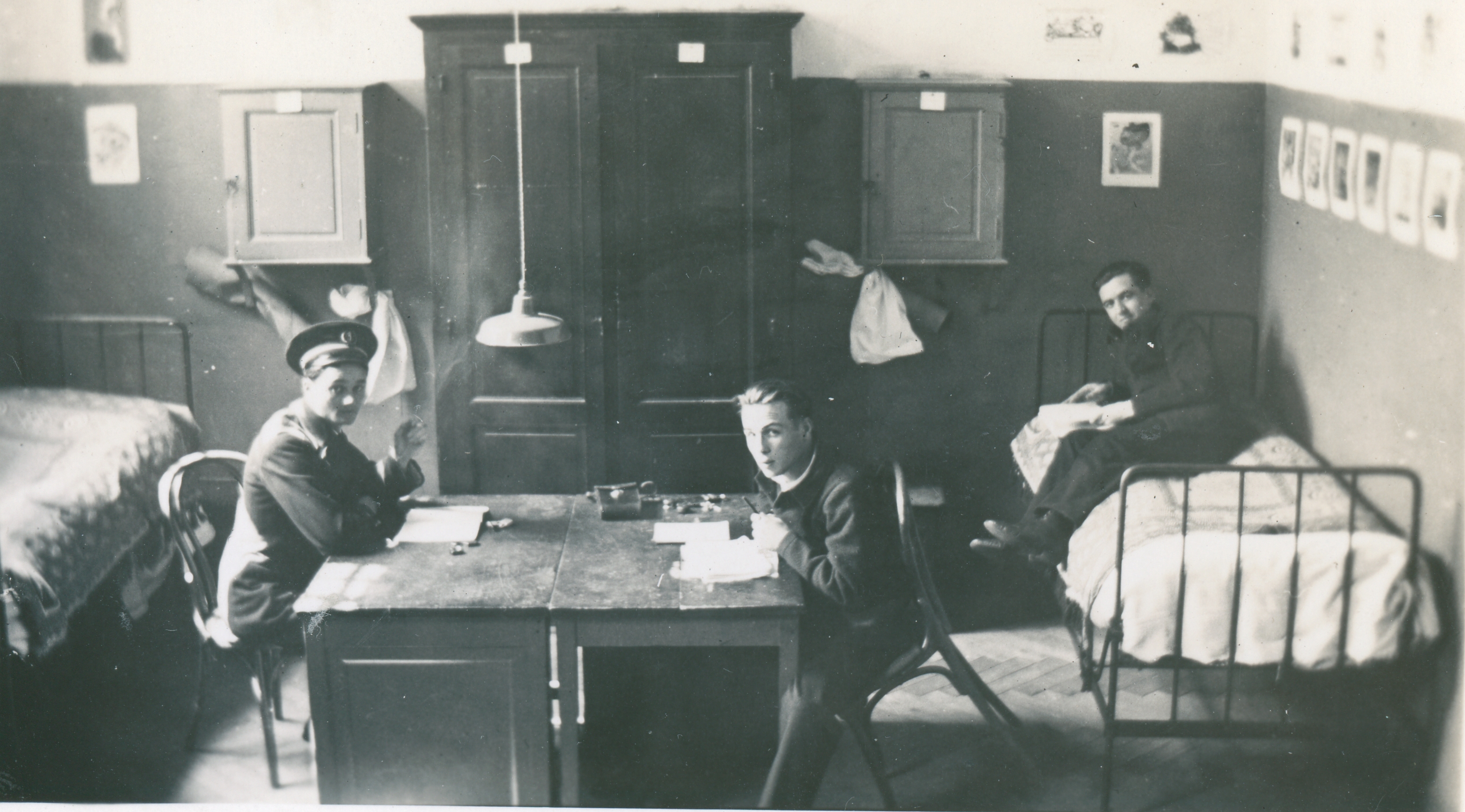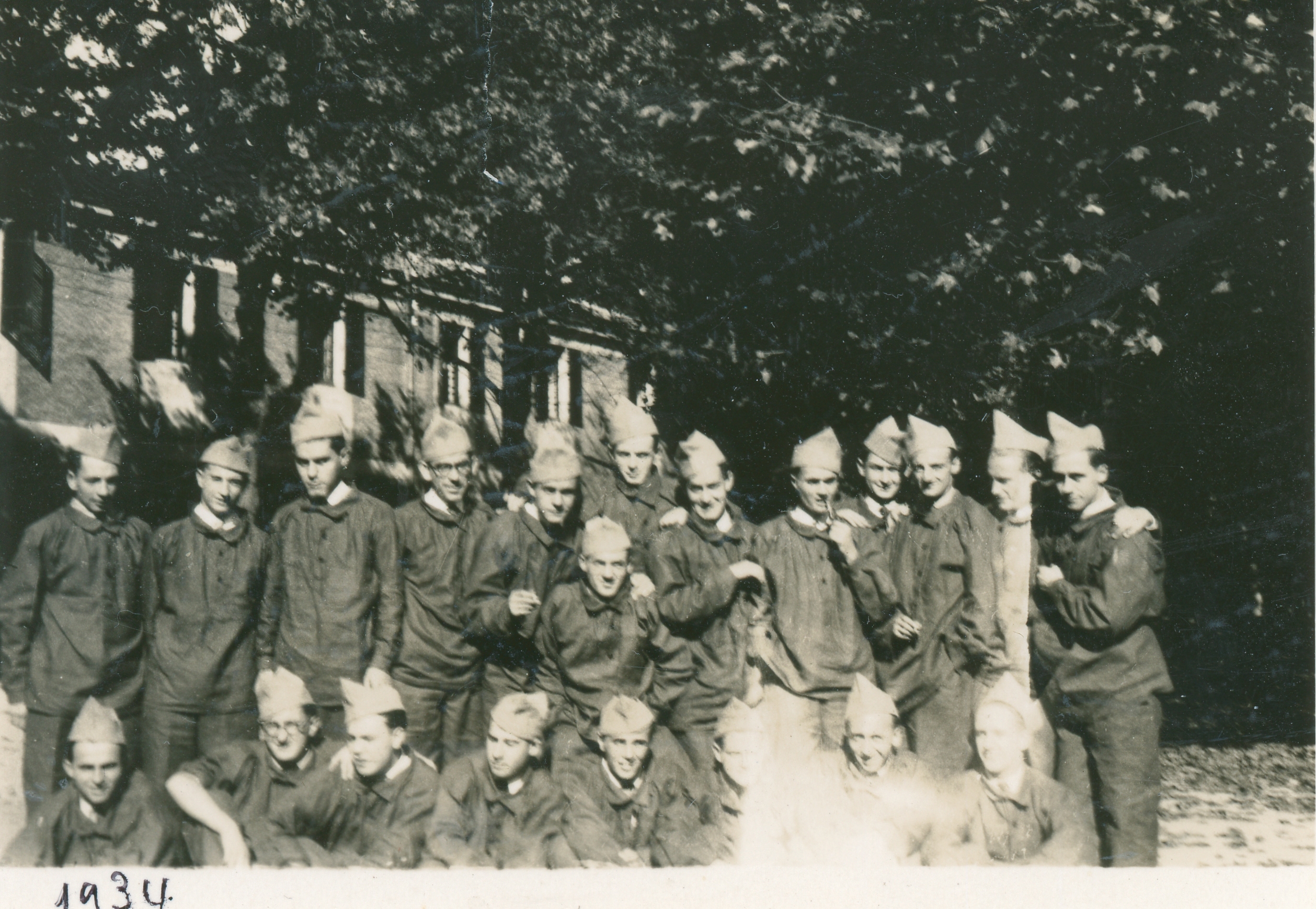 Photo on datée; Les présents ne sont pas identifiés. Georges Labail pourrait être le jeune homme assis au bureau de droite.