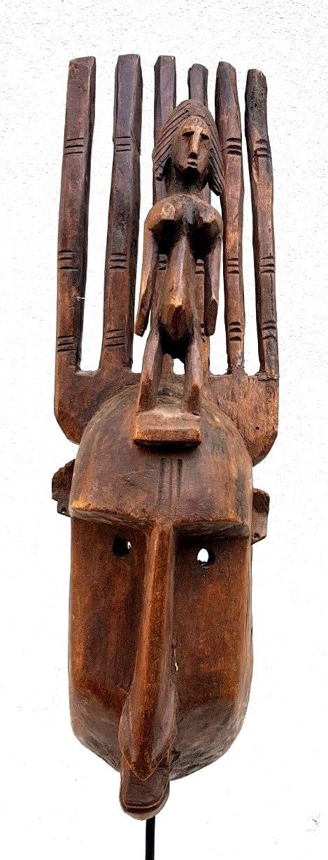 La structure qui surmonte la figure du masque symbolise le lien entre la terre et le ciel.