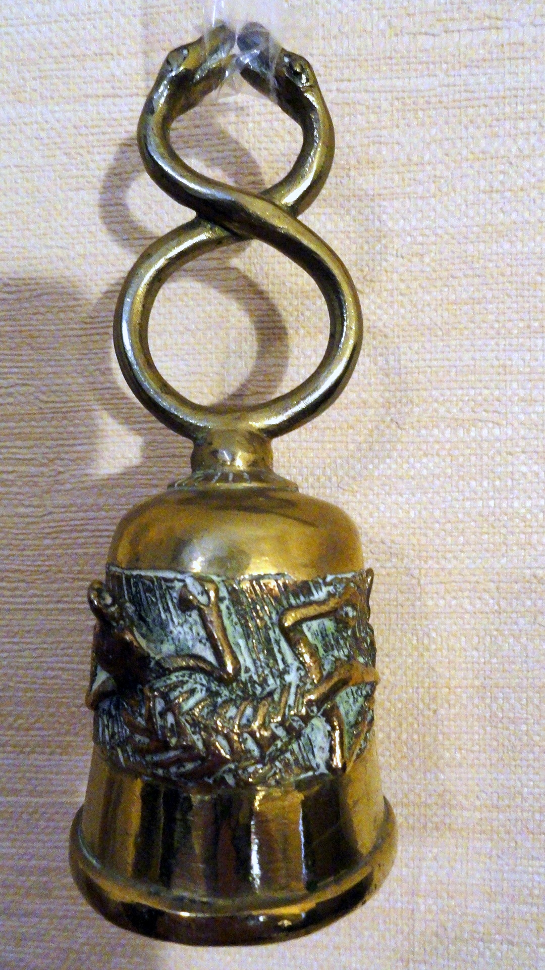 Remarquer l'anse qui rappelle un caducée sans la barre centrale verticale. Sur la robe, un animal stylisé qui pourrait être un crocodile ou une salamandre, au gré de l'imagination...