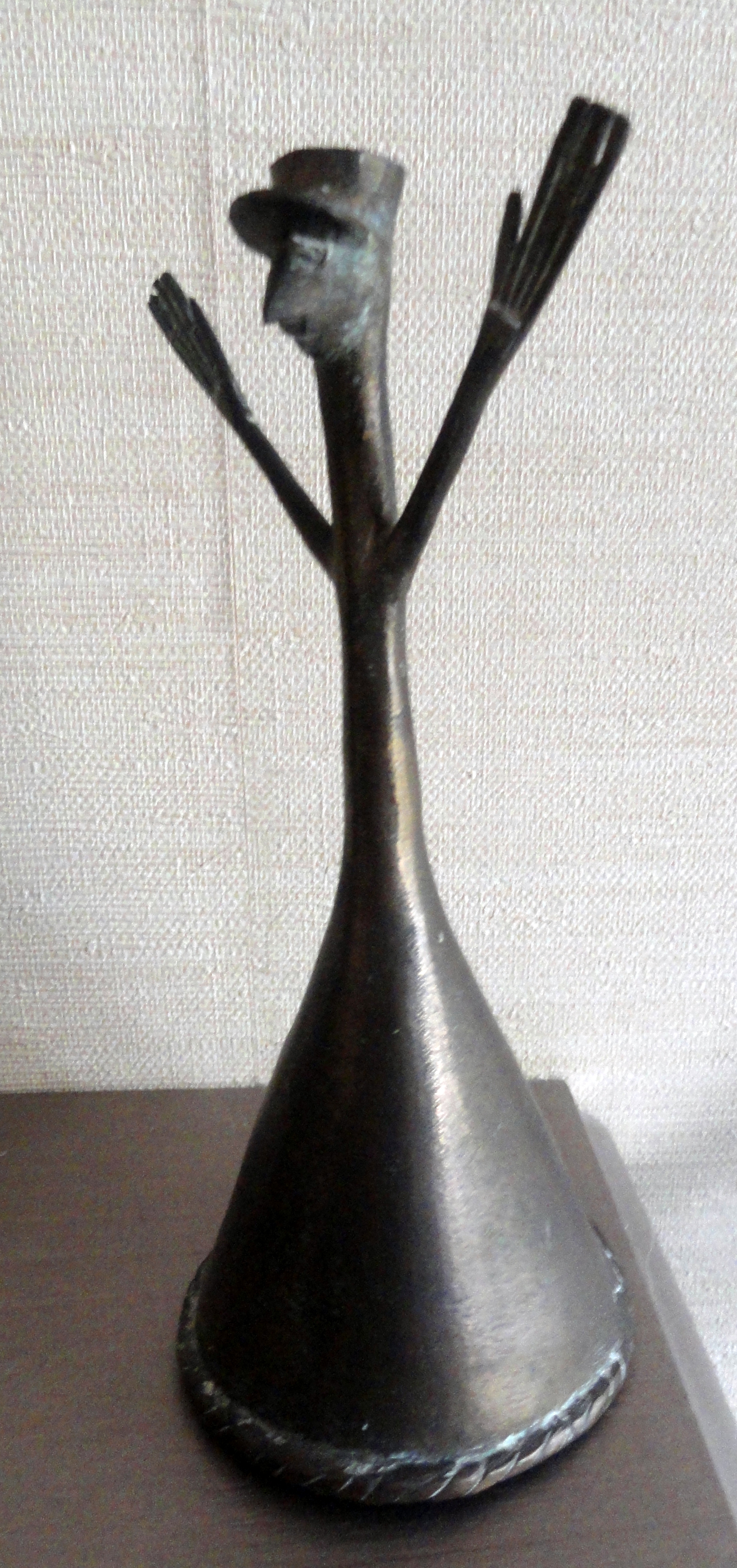 Origine : GabonRemarquer l'anse qui rappelle un caducée sans la barre centrale verticale. Sur la robe, un animal stylisé qui pourrait être un crocodile ou une salamandre, au gré de l'imagination...