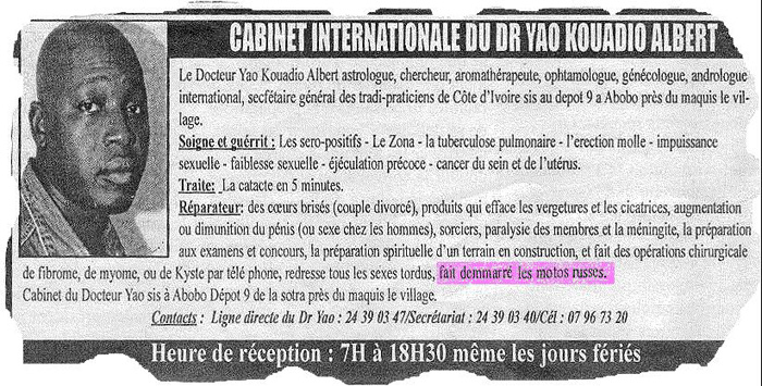 Réclame d'un guérisseur ivoirien