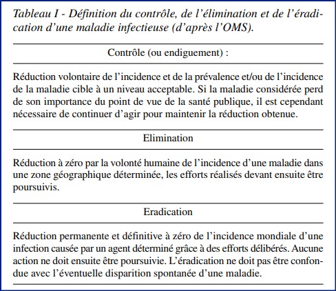 | Tableau extrait de l'article de Pierre Saliou, L'éradication des maladies infectieuses par la vaccination, MT, 2007; 67 : 321-327 |