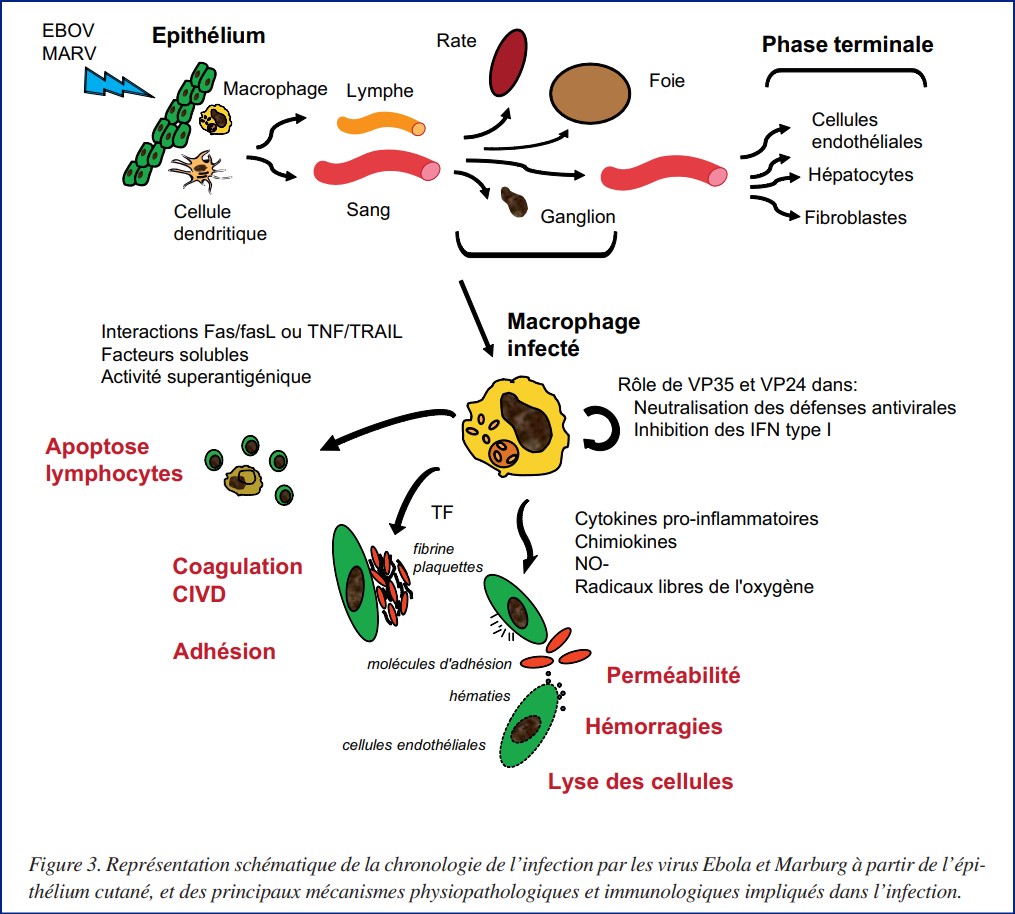 | Figure extraite de l'article Les fièvres hémorragiques à virus Ebola et Marburg: l'actualité des filovirus. LEROY E. et al., Med. Trop. 2011; 71 (2) : 111-121 |