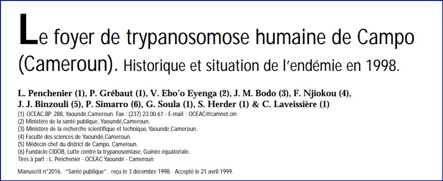 - PENCHENIER L, GRÉBAUT P et al., 1999 Le foyer de trypanosomose humaine de Campo (Cameroun). Historique et situation de l'endémie en 1998.